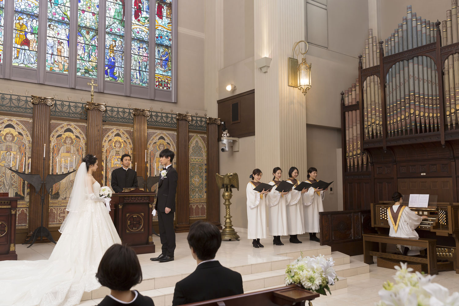 丘の上に立つ花に囲まれたステンドグラスの大聖堂と、3つのパーティ会場がギュッと集めた式場です。ぜひご見学にいらしてください。