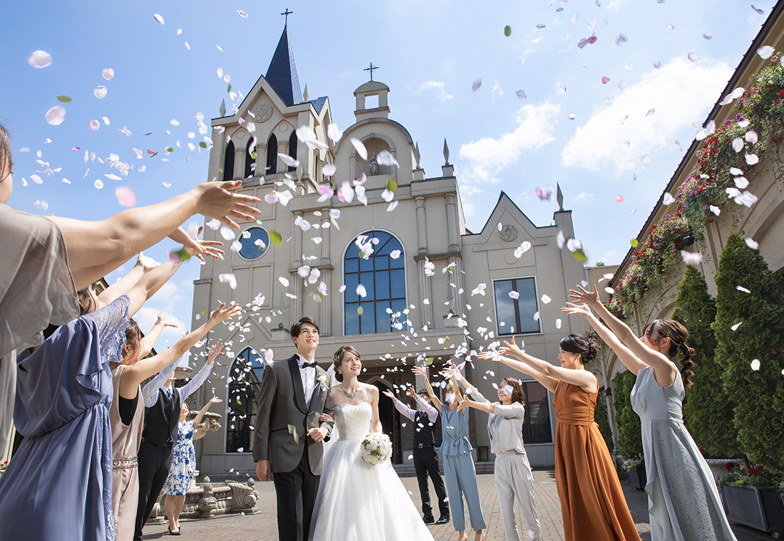 ふたりが現れたら、フラワーシャワー、ブーケトス、バルーンリリース、記念撮影などの演出が続きます。
