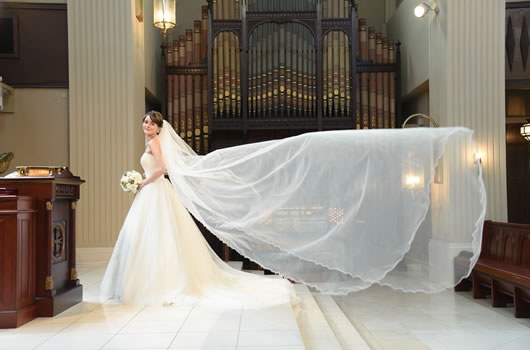 白銀の大自然の中、神聖な大聖堂で挙式を