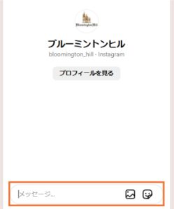 上記のリンクからアカウントを表示し、メッセ―ジボタンをタップします。