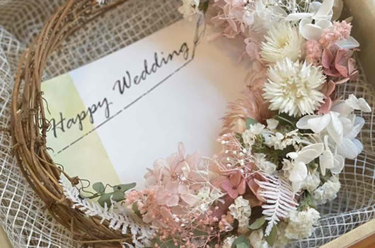 祝福の気持ちをメッセージに込めて フラワーアイテムや祝電は参列ができない場合はもちろん、参加するゲストや両家とのつなが...
