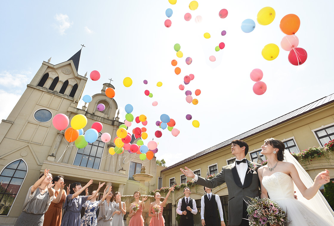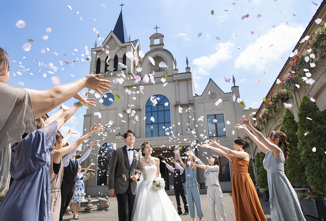花嫁の憧れ、大階段や青空の下でのフラワーシャワー。