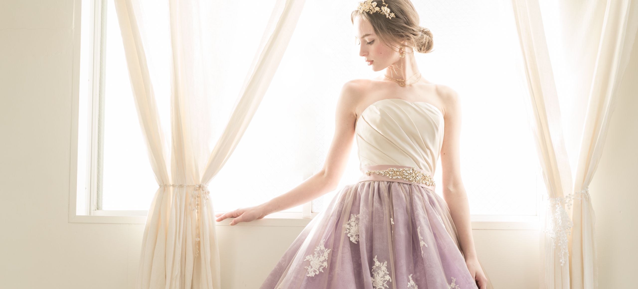 ブルーミントンヒルには新作のドレスが揃い、カテドラルウエディングに映えるドレスはフォトジェニックなカラードレス、そして伝統的な和装を選びたいという、さまざまな花嫁のリクエストにお応えできます。