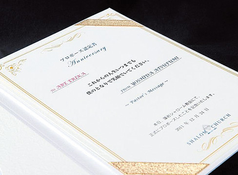 日付・メッセージをお入れした認定書をお渡しいたします。