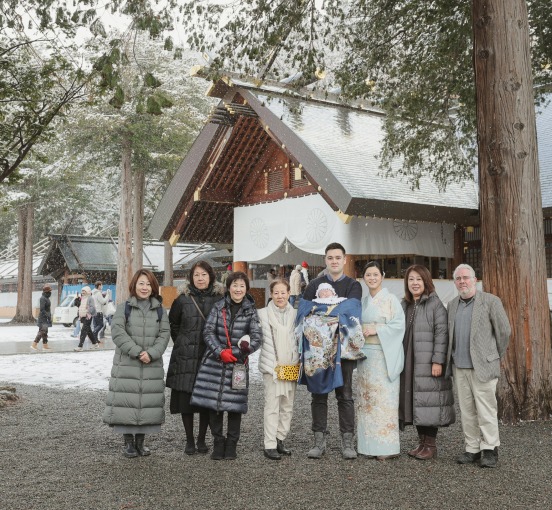 式当日はご来館いただき記念撮影、そして式の会場へ。前撮りも可能ですのでお気軽にご相談ください。