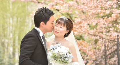 北海道の桜の開花は5月。新緑が美しく気候もさわやか。ブルーミントンヒルの敷地内の「桜」とともに、やわらかな雰囲気の写真が撮影できます