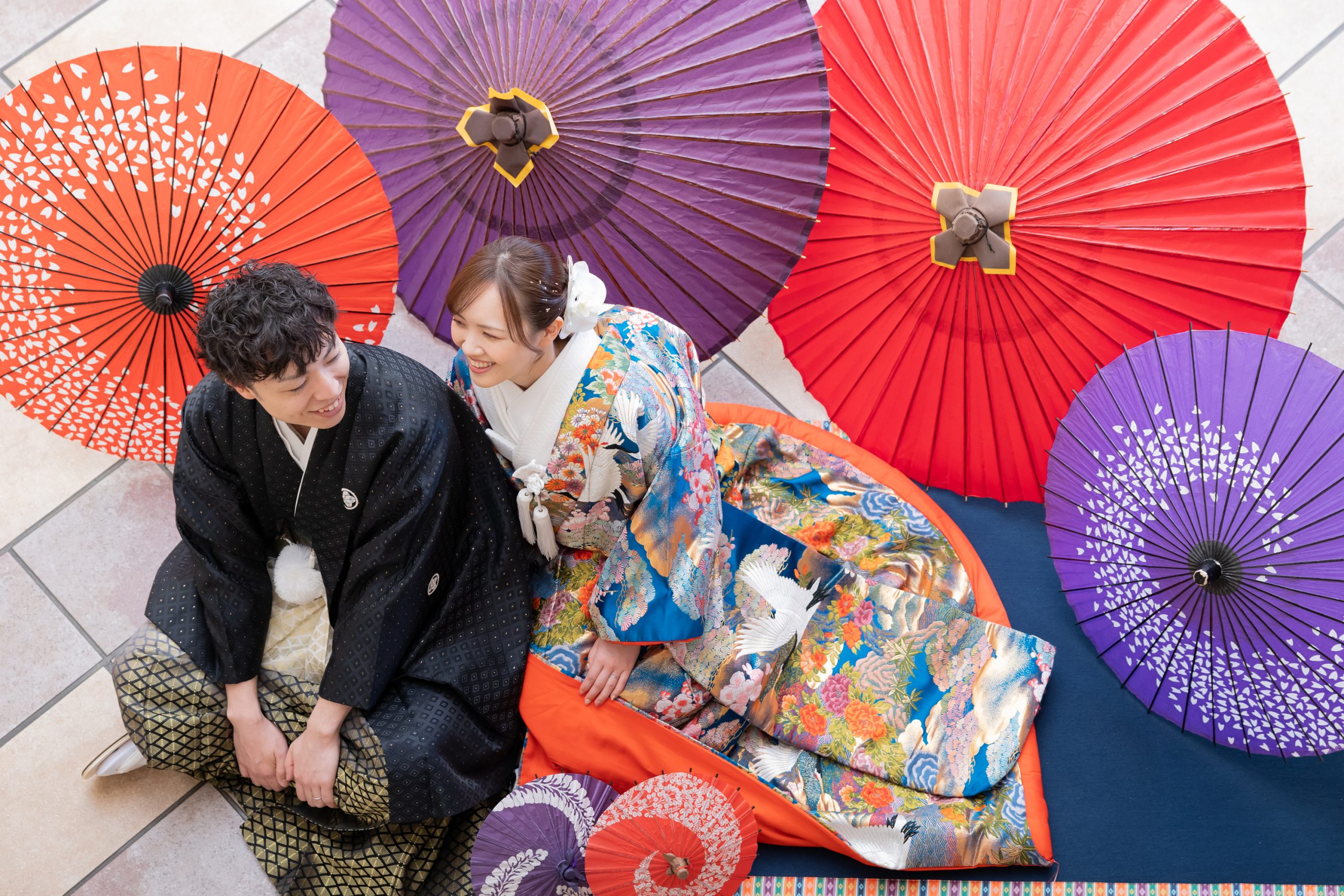 新郎新婦のお衣裳と追加衣裳、20ページ・30カットのアルバムと50カット分のデータがセットになったプランです。