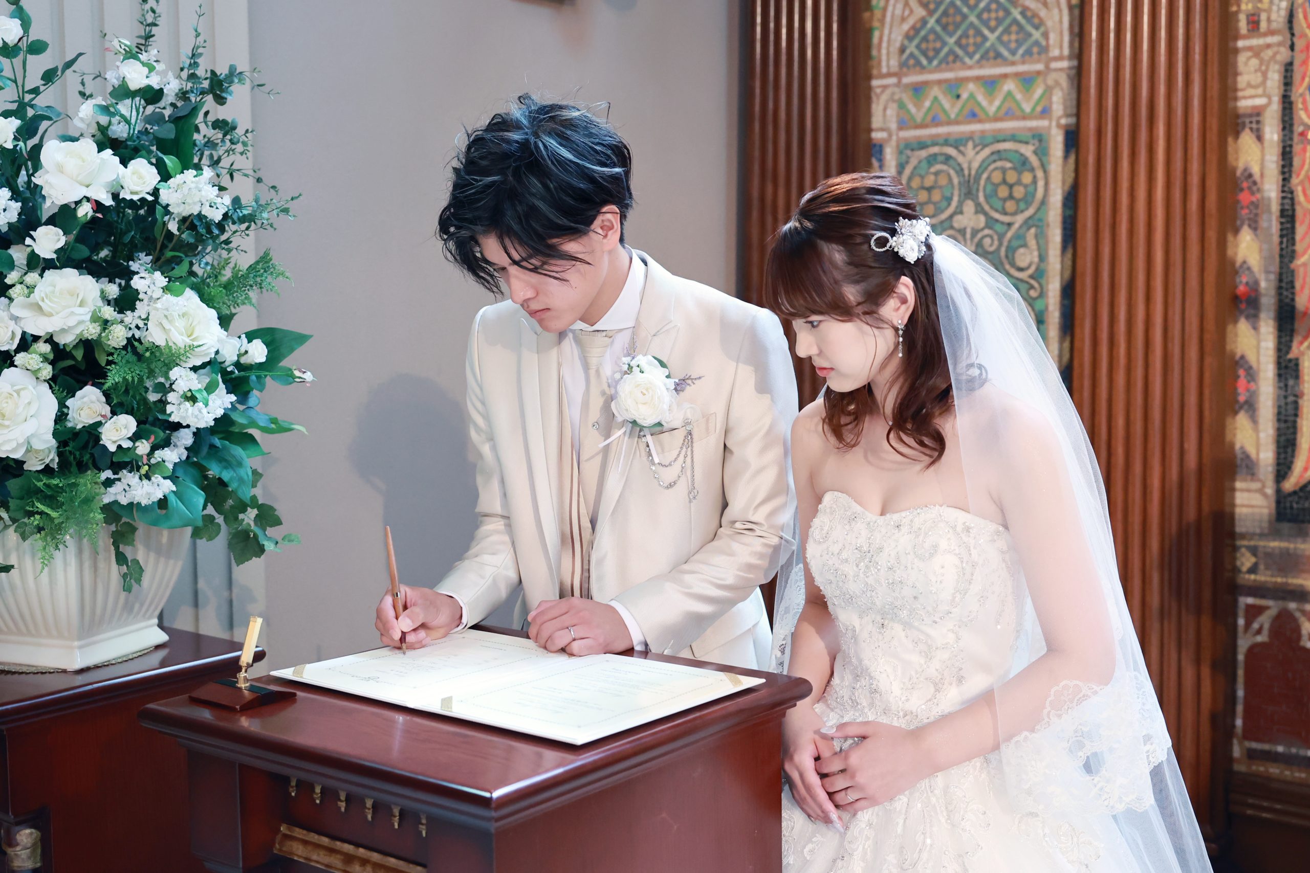 結婚証書のサインなど、挙式の大切なシーンも撮影します