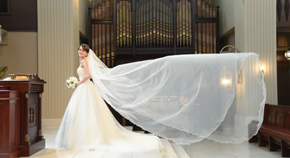ドレスが美しく映える20mの大理石のヴァージンロード